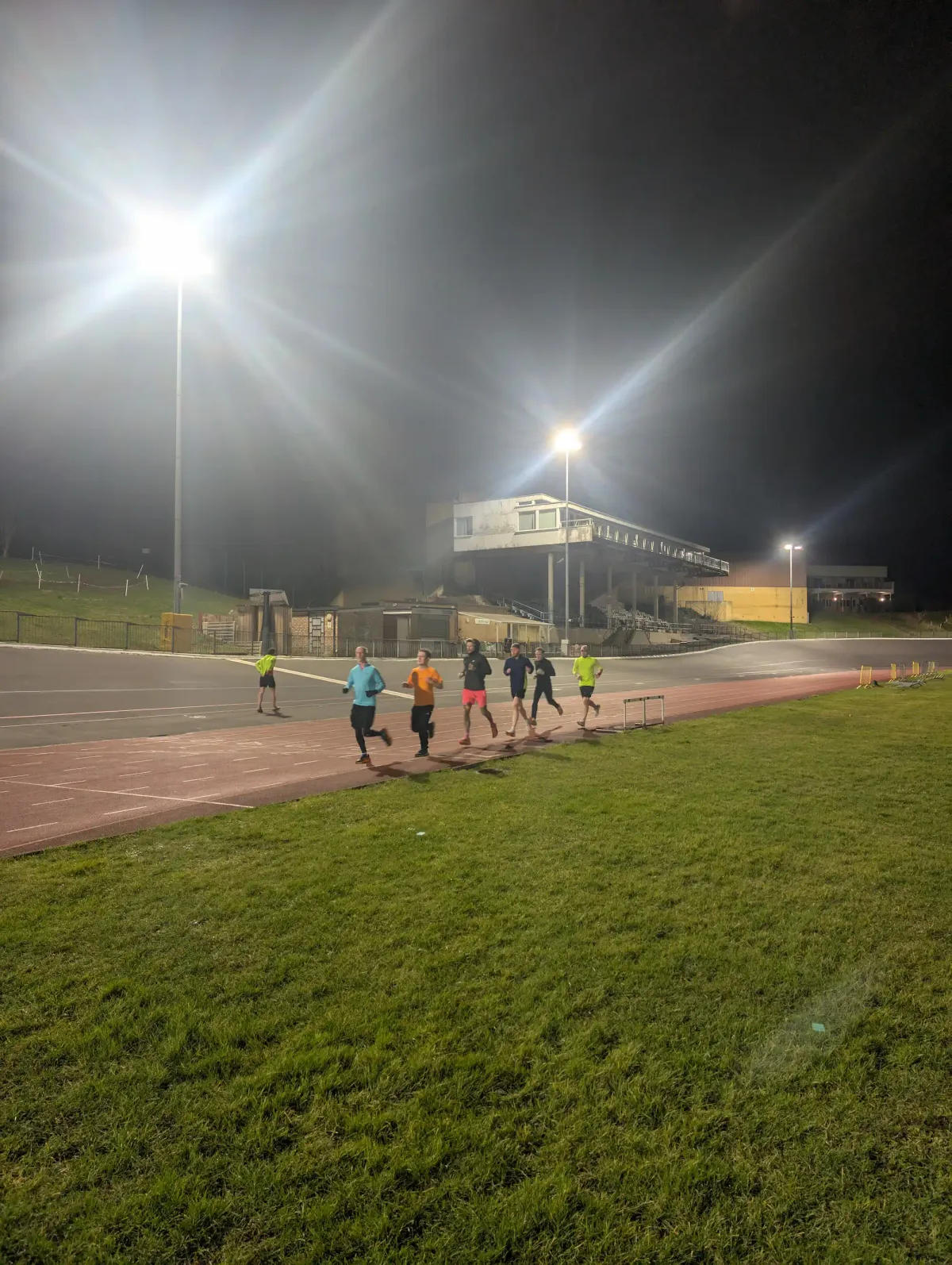For my third track session ever tje group was running 400m chunks. This is an intense session that gives you just enough recovery in between each chunk to get get going again.